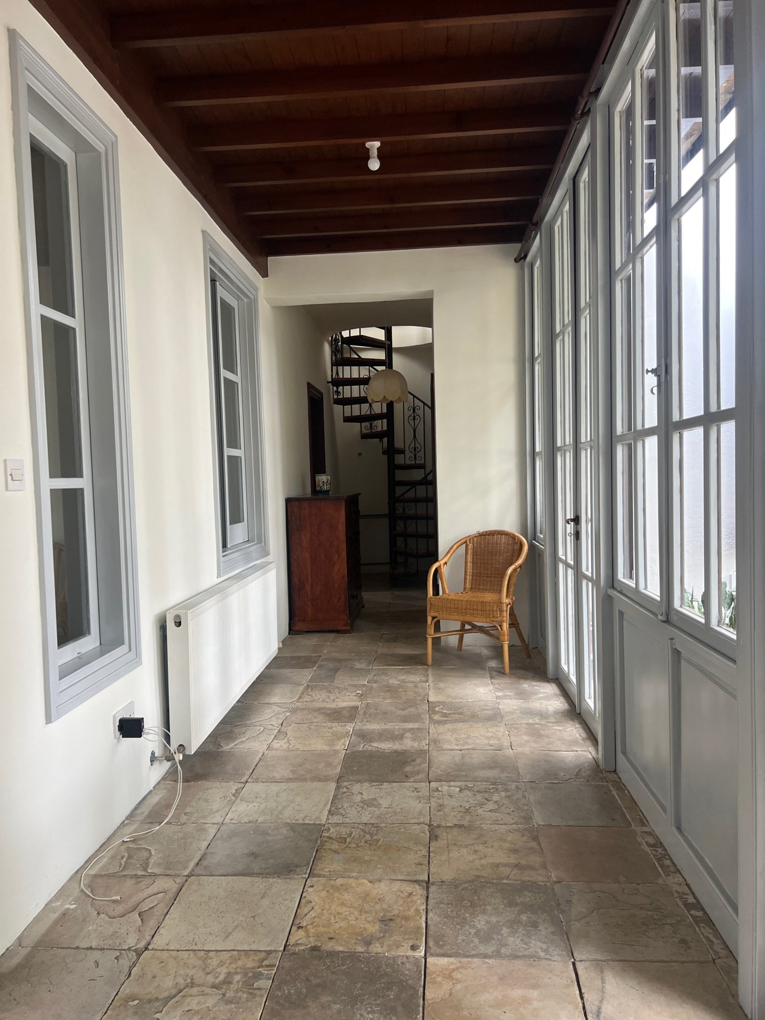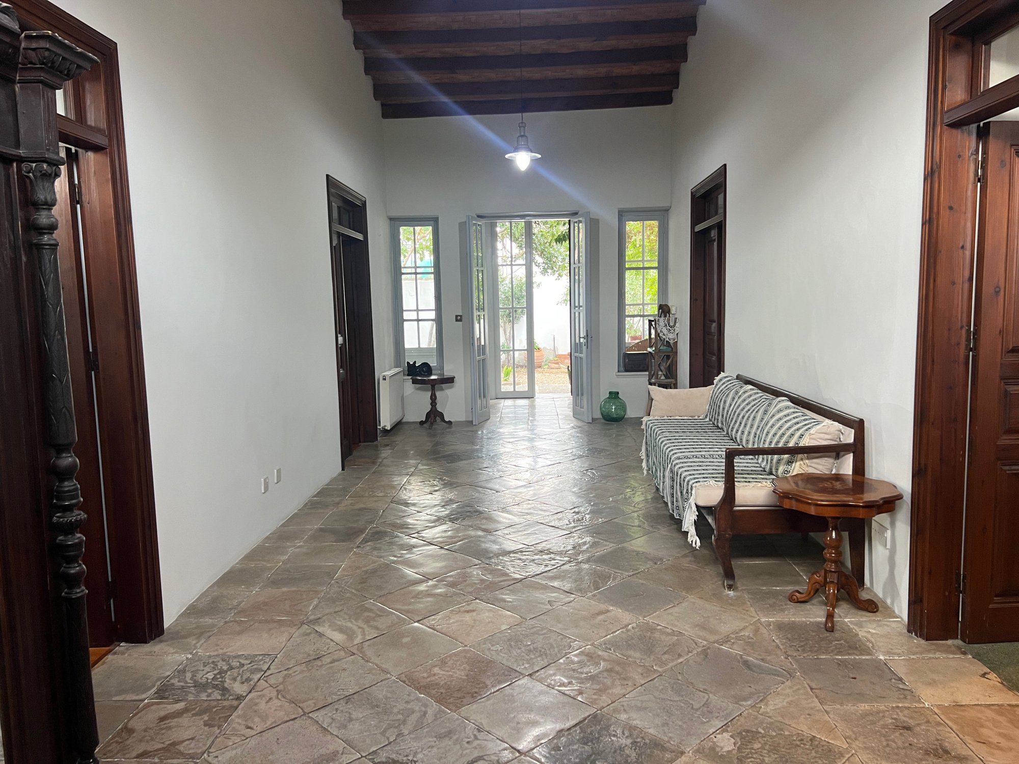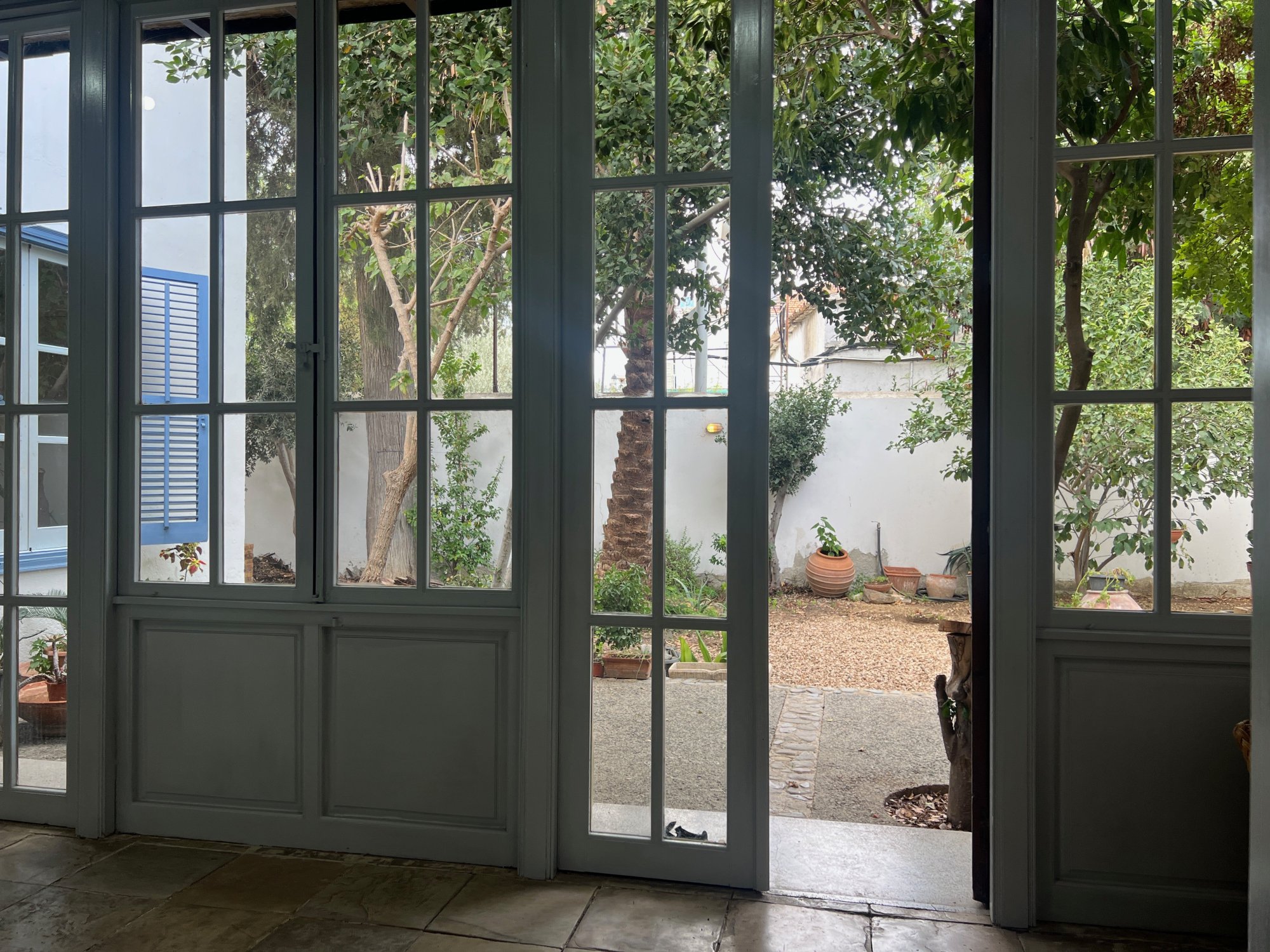 - Corridor: Features glass windows leading to the lush garden and courtyard